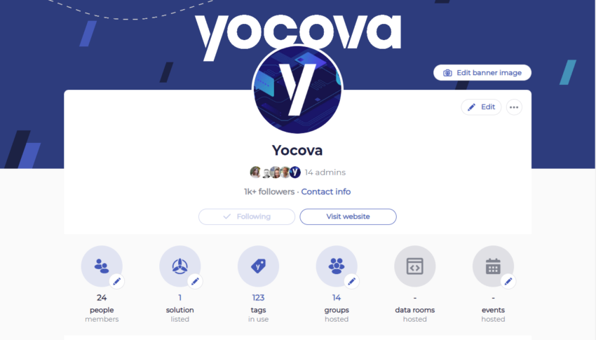 The new Company page allows users of the platform to see information about a Company, including the feed posts, be able to follow/unfollow the Company, as well as find shortcuts to lists of all the Company’s solutions, groups and more. Yocova members can find a Company through the new section in Explore, the Marketplace, and via search. Company members can access their own Company profile by clicking on ‘Me’, and selecting the Company name or by clicking on the Company name from the Home page via the Company section.